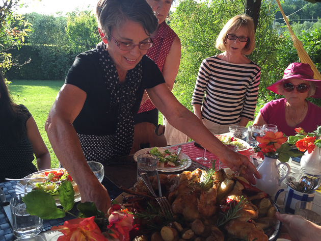 Here is a portrait I started in a demo for the Portland group Buffalo Grass and finished in the Tuscany workshop, from a photo taken last year in Italy. This work is of an artist, Marj Pucchi, who taught art in the states and retired with her husband to his family home in the hills above Lucca. She is quite a charmer, both in personality and image!